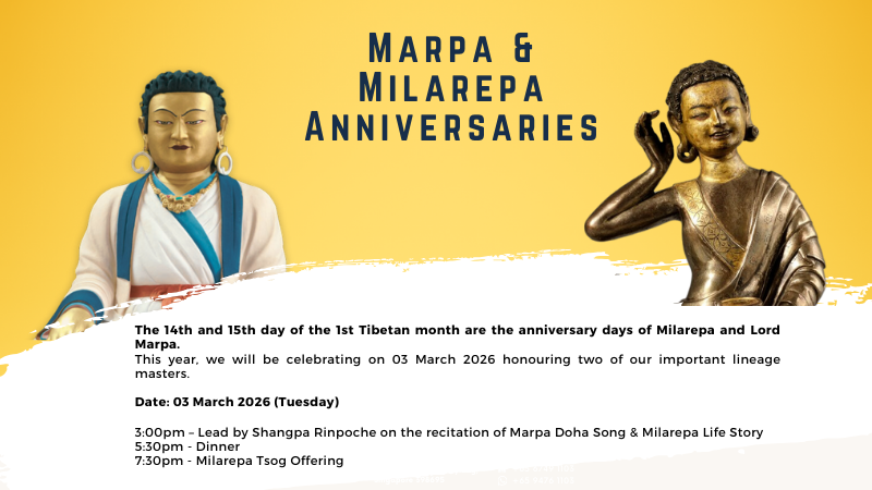 His Holiness the 16th Gyalwa Karmapa to realise the precious teachings of Buddha in Singapore. Since then, through various programmes such like classes, meditation, teachings, practices and many more, the Centre has benefited many people.